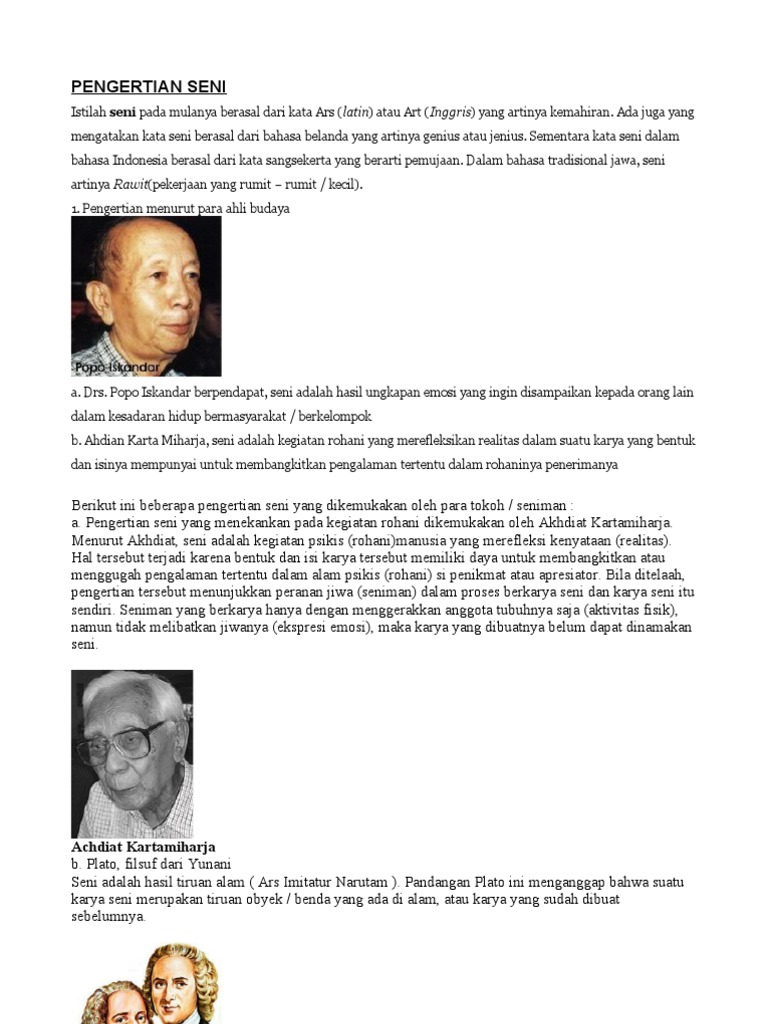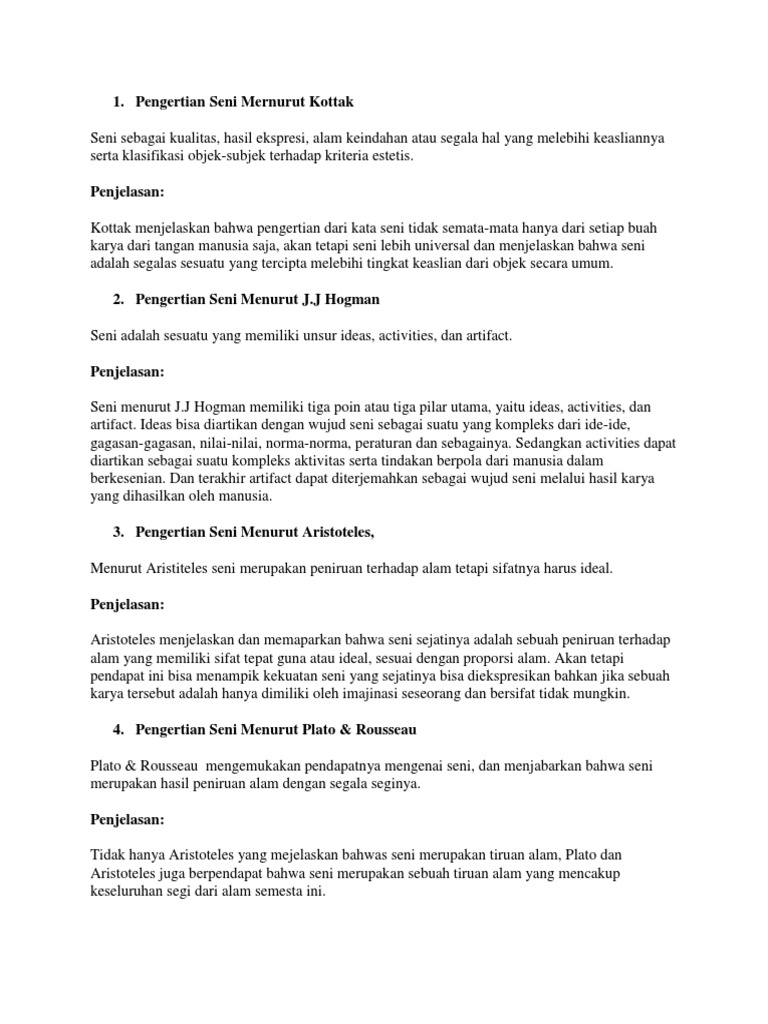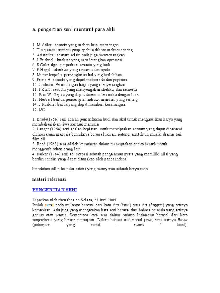 Pengertian Seni Menurut Para Ahli Docx Document