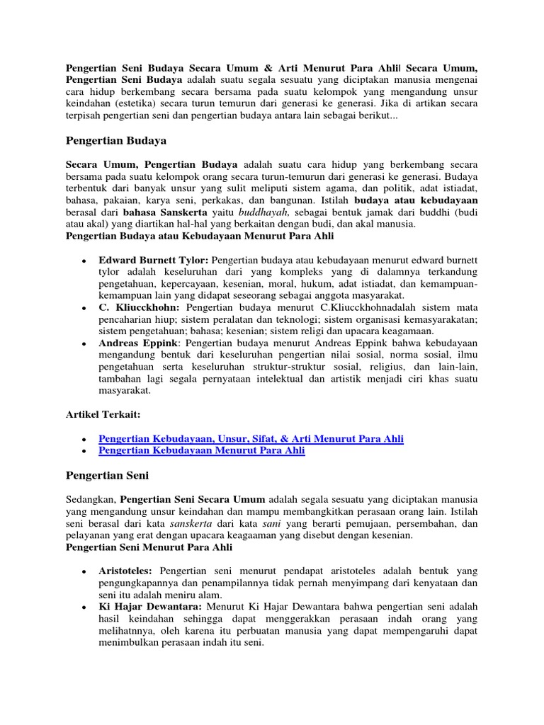 Pengertian Dan Definisi Seni Budaya Menurut Para Ahli