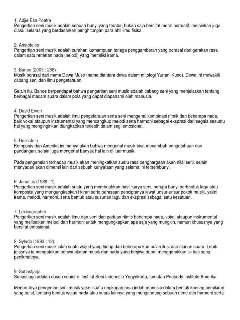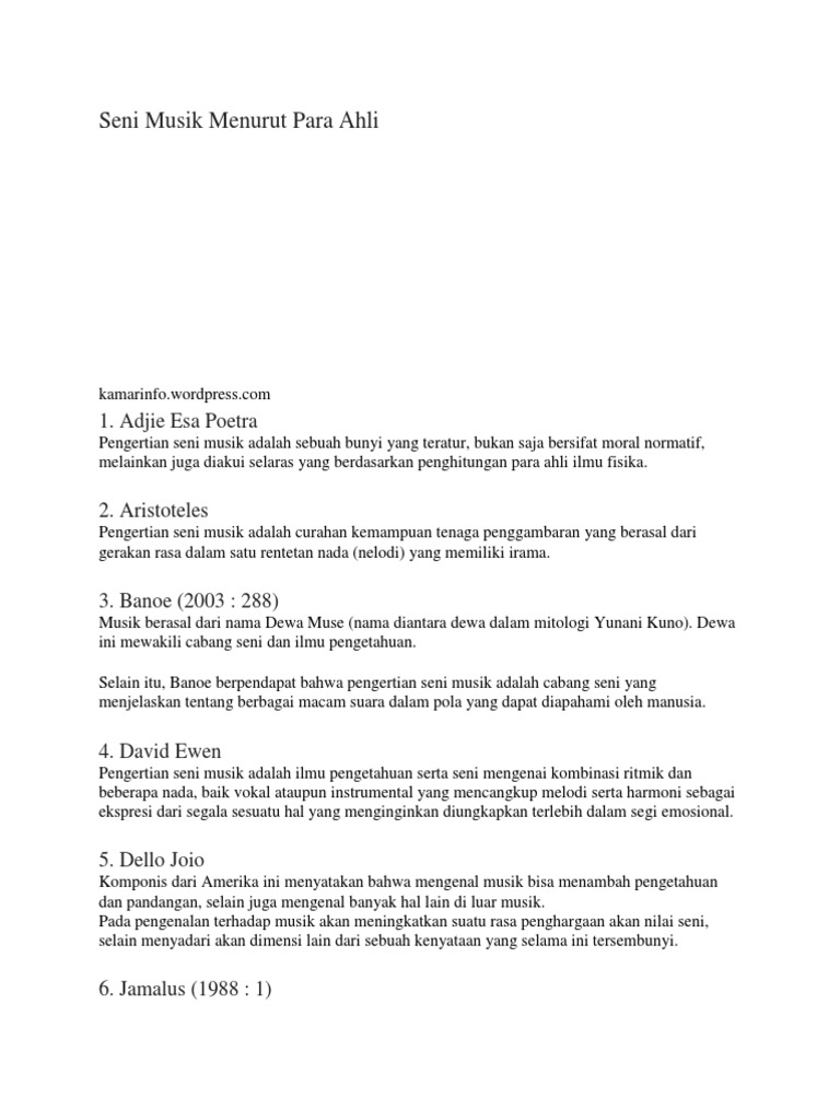 Pengertian Seni Musik Menurut Para Ahli Docx