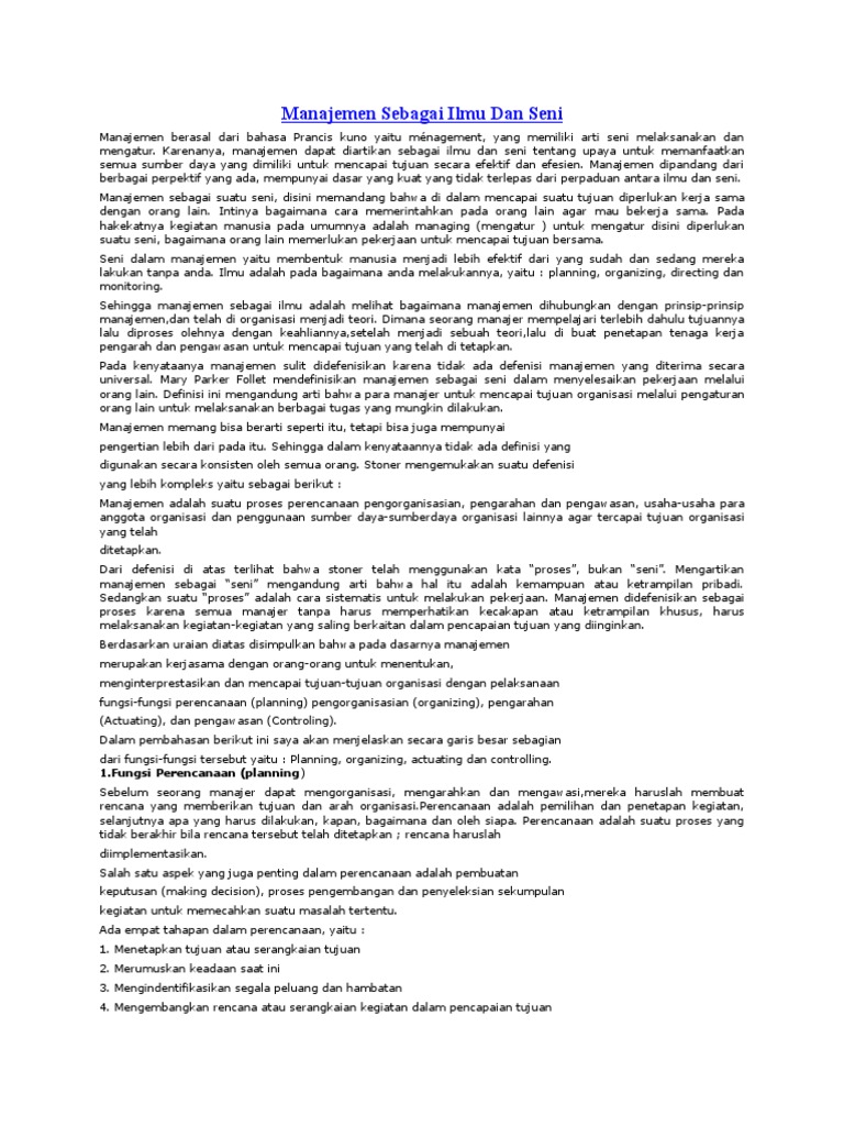 Manajemen Sebagai Ilmu Seni Dan Profesi Ilmusosial Id