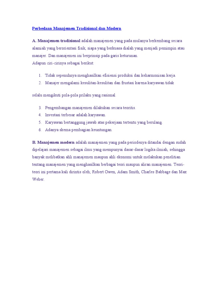 Perbedaan Manajemen Tradisional Dan Modern