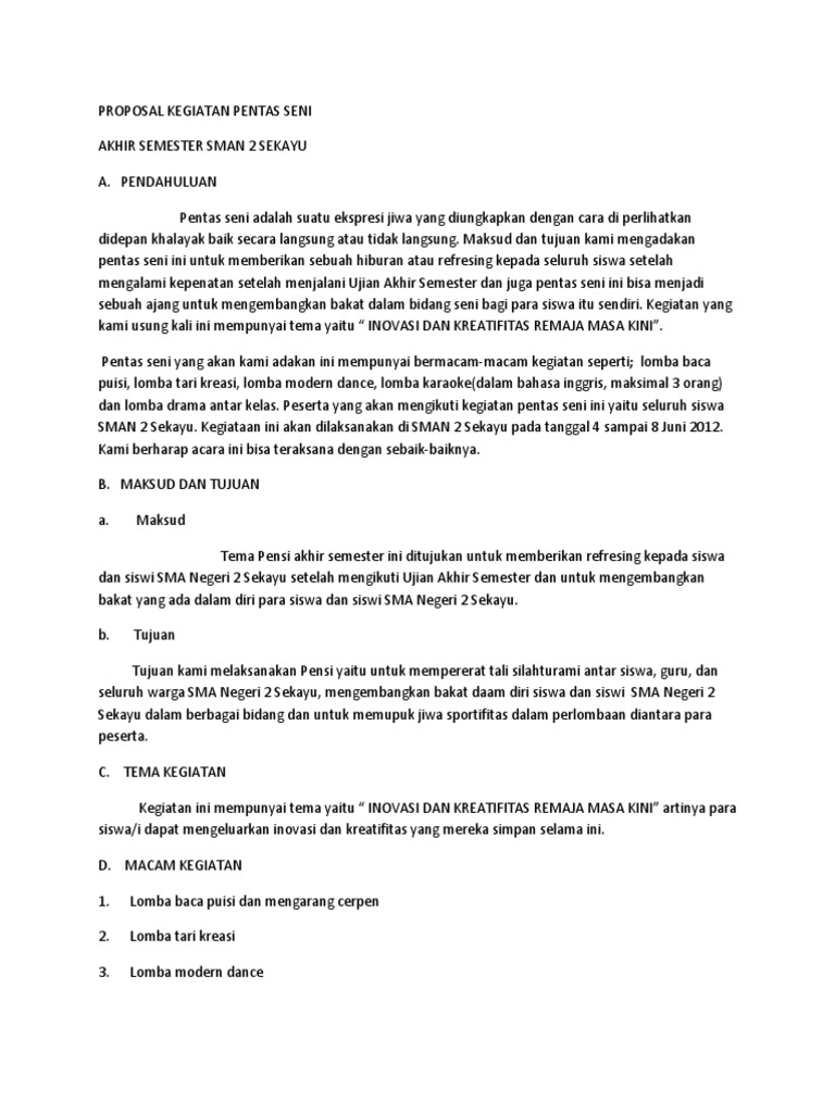 Doc Proposal Pentas Seni Pensi Sma Negeri 1 Karanganyar Ansyar Fauzani Academia Edu