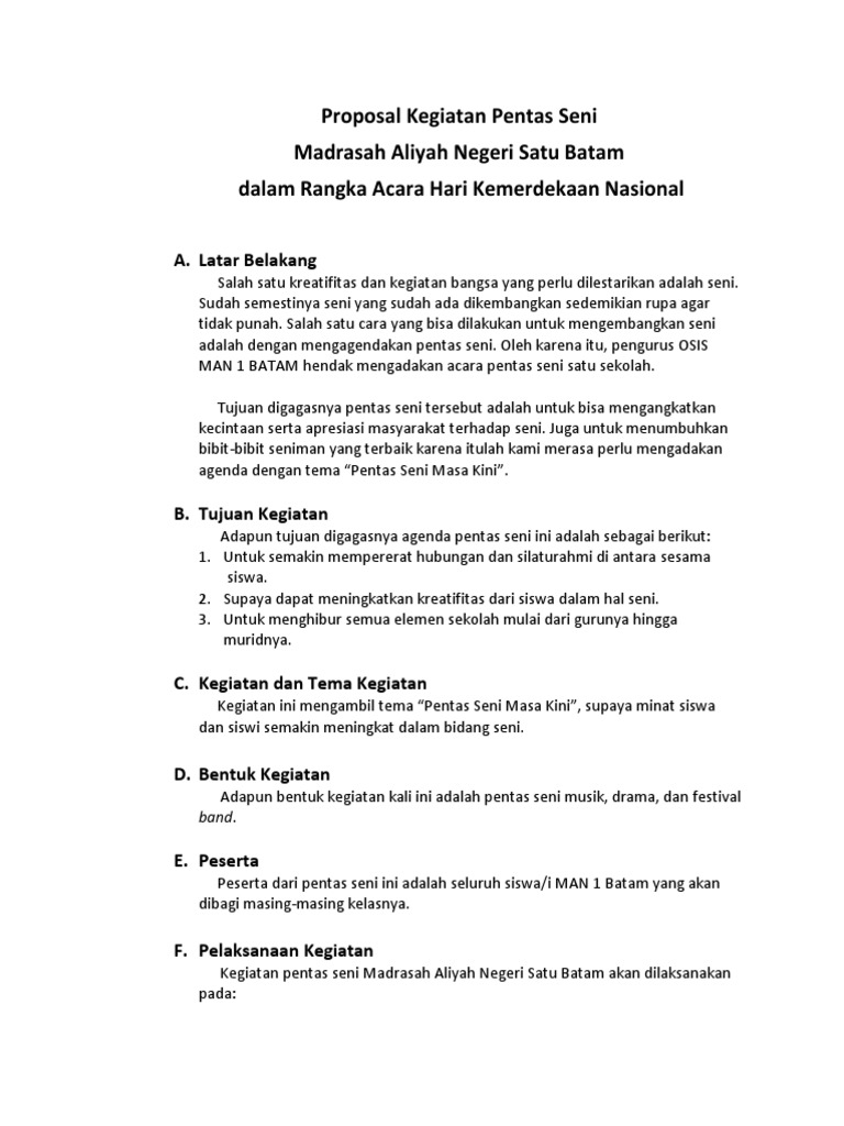 Proposal Kegiatan Pentas Seni Madrasah Aliyah Negeri Satu Batam Dalam Rangka Acara Hari Kemerdekaan Nasional