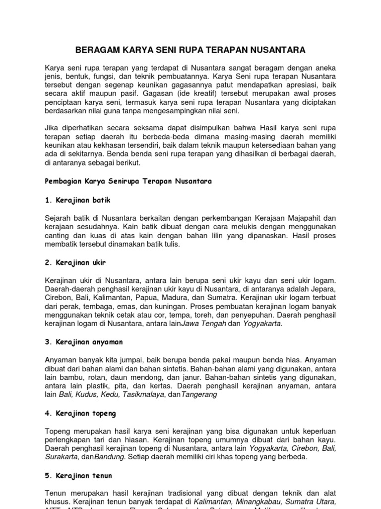 Beragam Jenis Karya Seni Rupa Terapan Nusantara Pdf Download Gratis